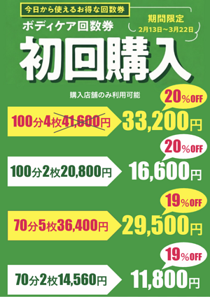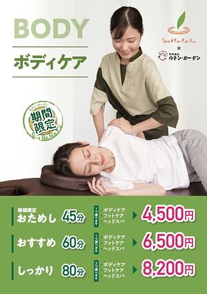 通常のボディケアメニューの他に足つぼやドライヘッドスパ、アカスリもご用意しております。