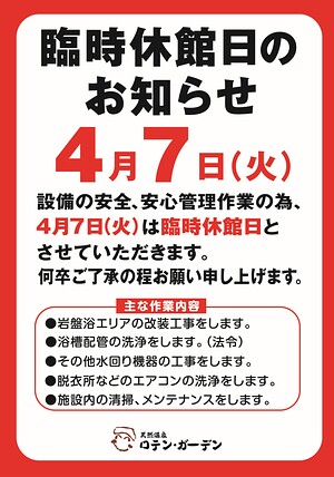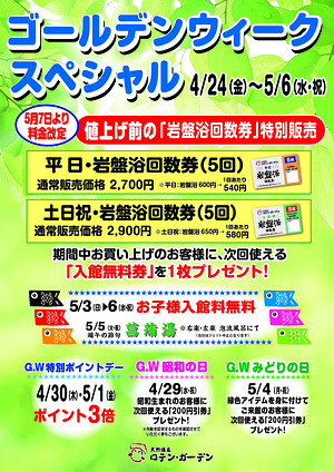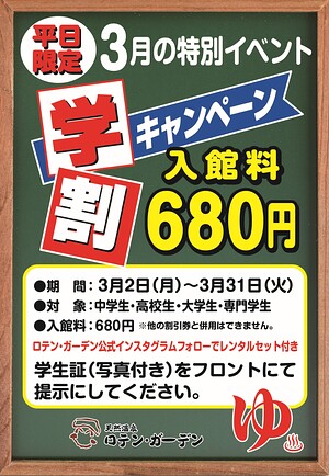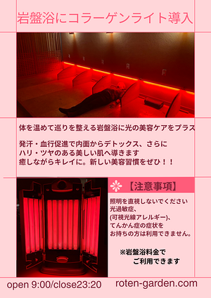 ロテン・ガーデンのお風呂は「左楽風呂(和風)」と「右楽風呂(洋風)」という2種類の浴室があり、日替わりで男湯・女湯になります。琥珀色に輝く贅沢な天然温泉で、日々の疲れを癒してみませんか?