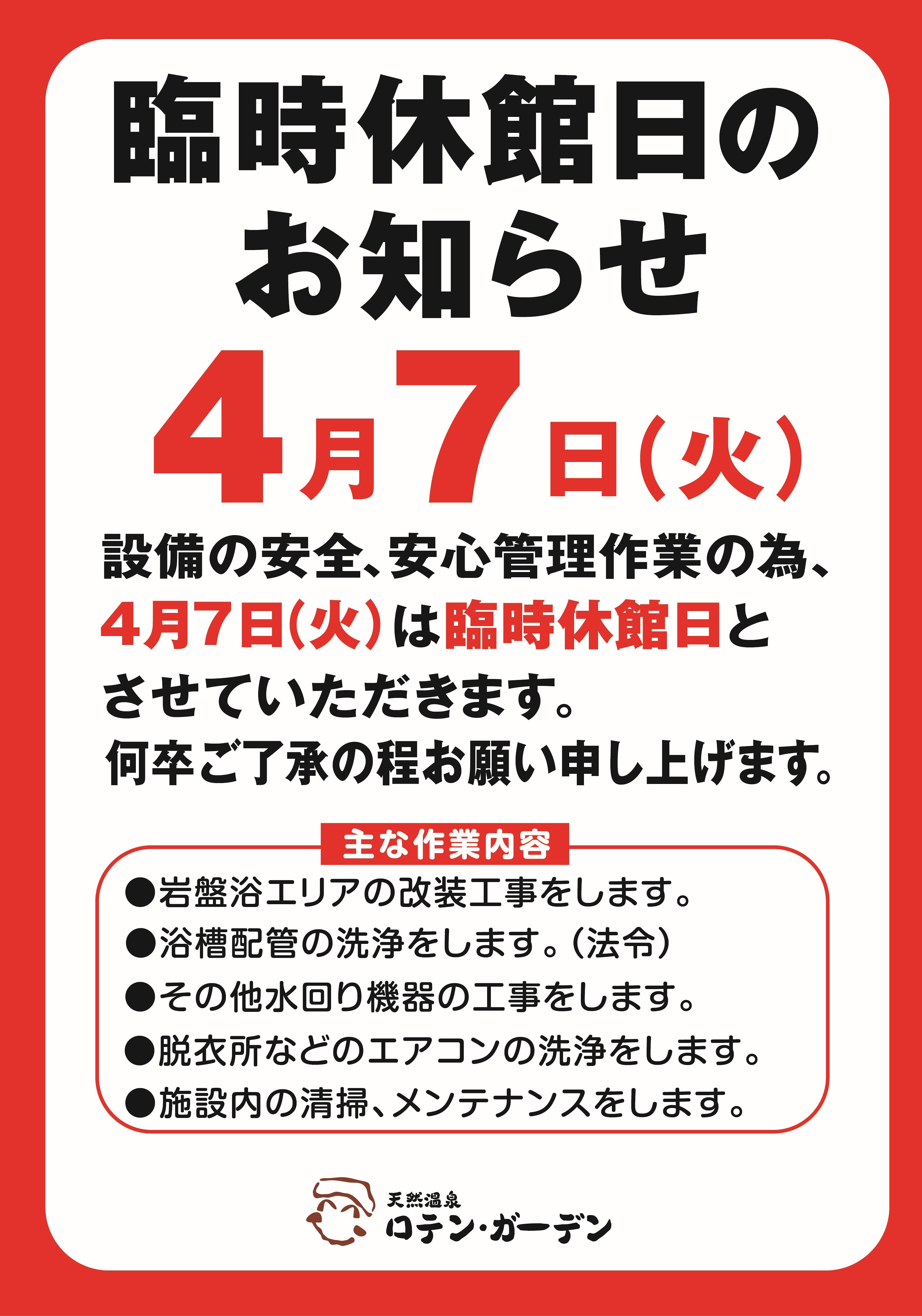 休館日のお知らせ