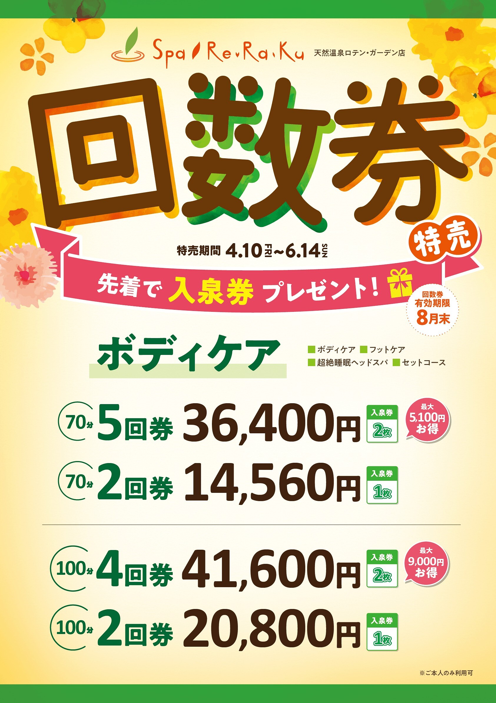 Spa Re.Ra.Ku ボディケア回数券特別販売